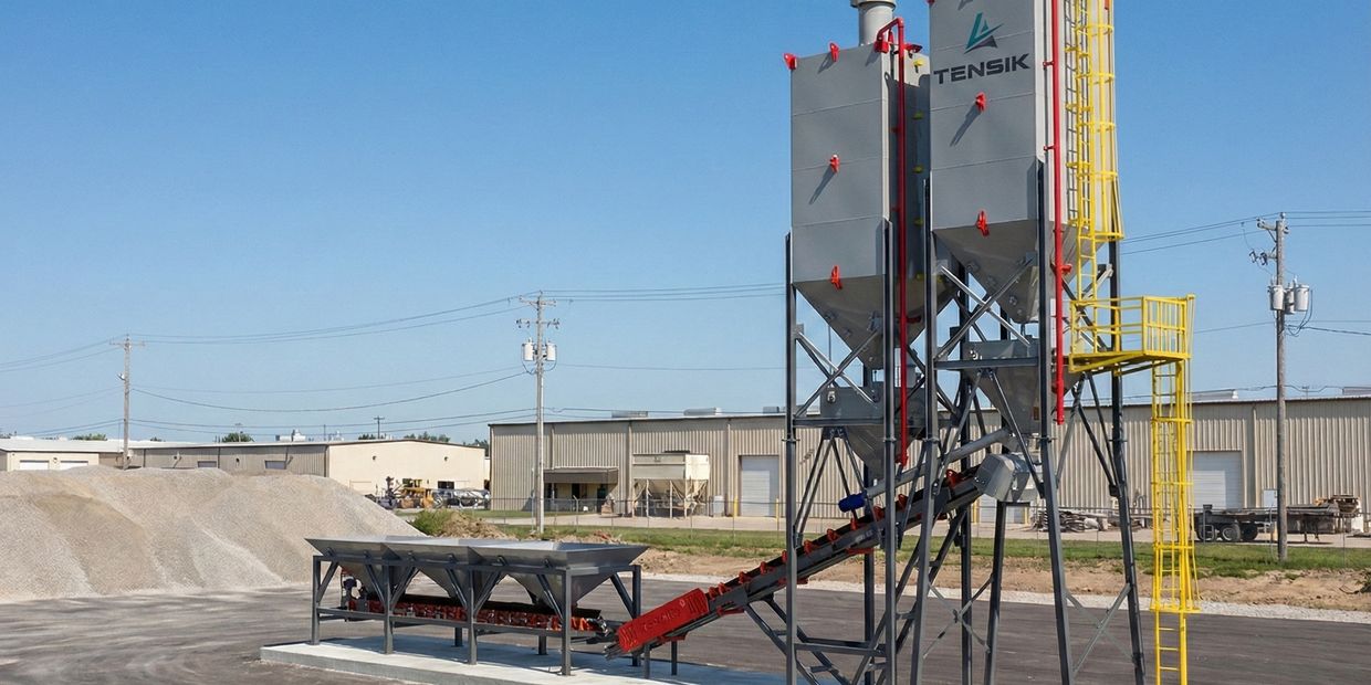 The Tensik Deck 100 is a high-production decumulative, low-profile batching plant engineered for direct loader charging—allowing aggregates to be fed straight into the plant at ground level, without overhead aggregate storage. This deck-style configuration simplifies site logistics, reduces structural complexity, and supports fast installation while maintaining accurate weighing and reliable material handling.